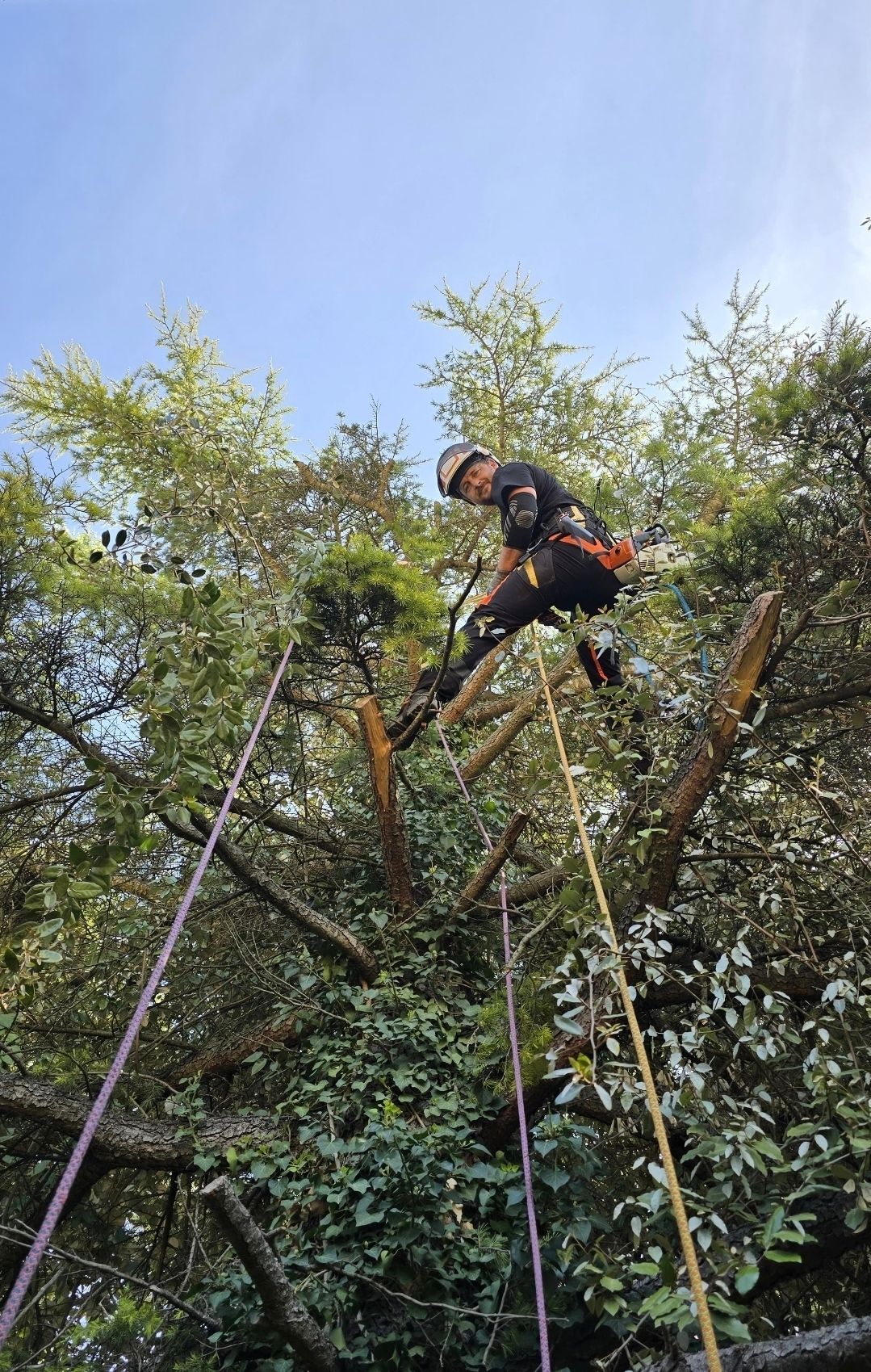 Un expert grimpeur elagueur à pris en compte la situation. Voici les quelques équipements nécessaires: